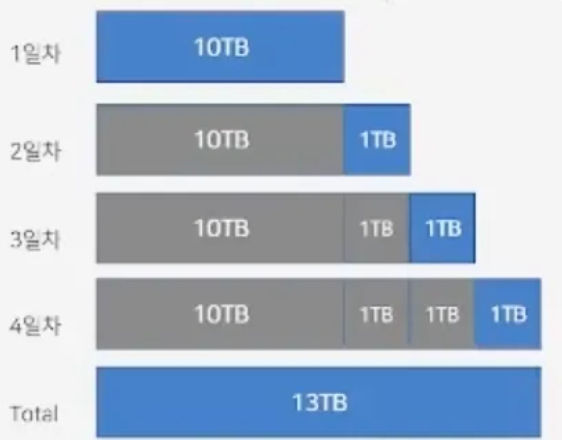 - 최소 7일 ~ 최대 52주까지 백업 파일 보관 가능, 단일 서버의 하루 백업 최대 용량은 1TB