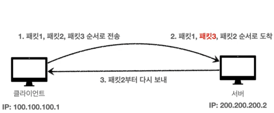 TCP 세그먼트에 순서에 대한 정보를 포함하기 때문에 잘못된 순서로 패킷이 전달되면 이를 최적화 할 수 있음.